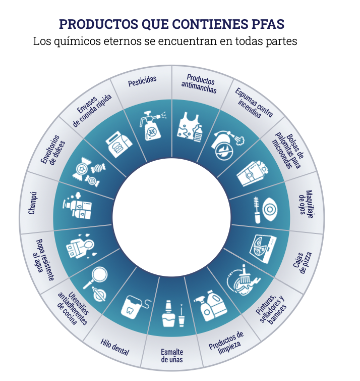 Los podemos encontrar en sartenes antiadherentes, ropa impermeable, espumas antiincendios, envases de comida rápida, cosméticos, productos de limpieza y hasta en alfombras. Estos químicos eternos se utilizan en distintas industrias desde la década de 1940, y sus usos están ampliamente extendidos debido a sus capacidades de repeler el fuego, el agua y el aceite.
